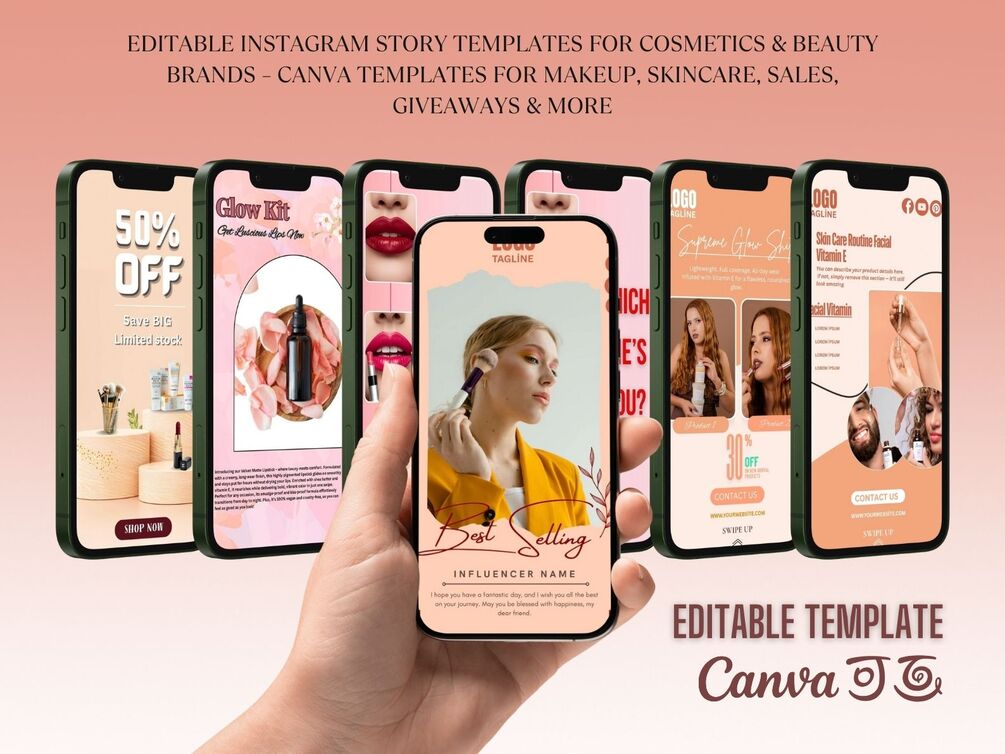 16 Canva Instagram Story Templates for Beauty, Skincare, Makeup, Fashion Brands | Editable Digital Download for Social Media